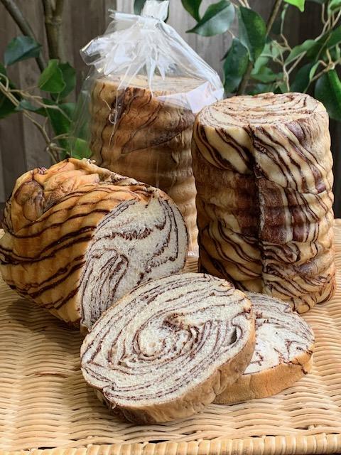 マーブル状にそれぞれチョコクリームやメープルクリームを折り込んで焼き上げました。